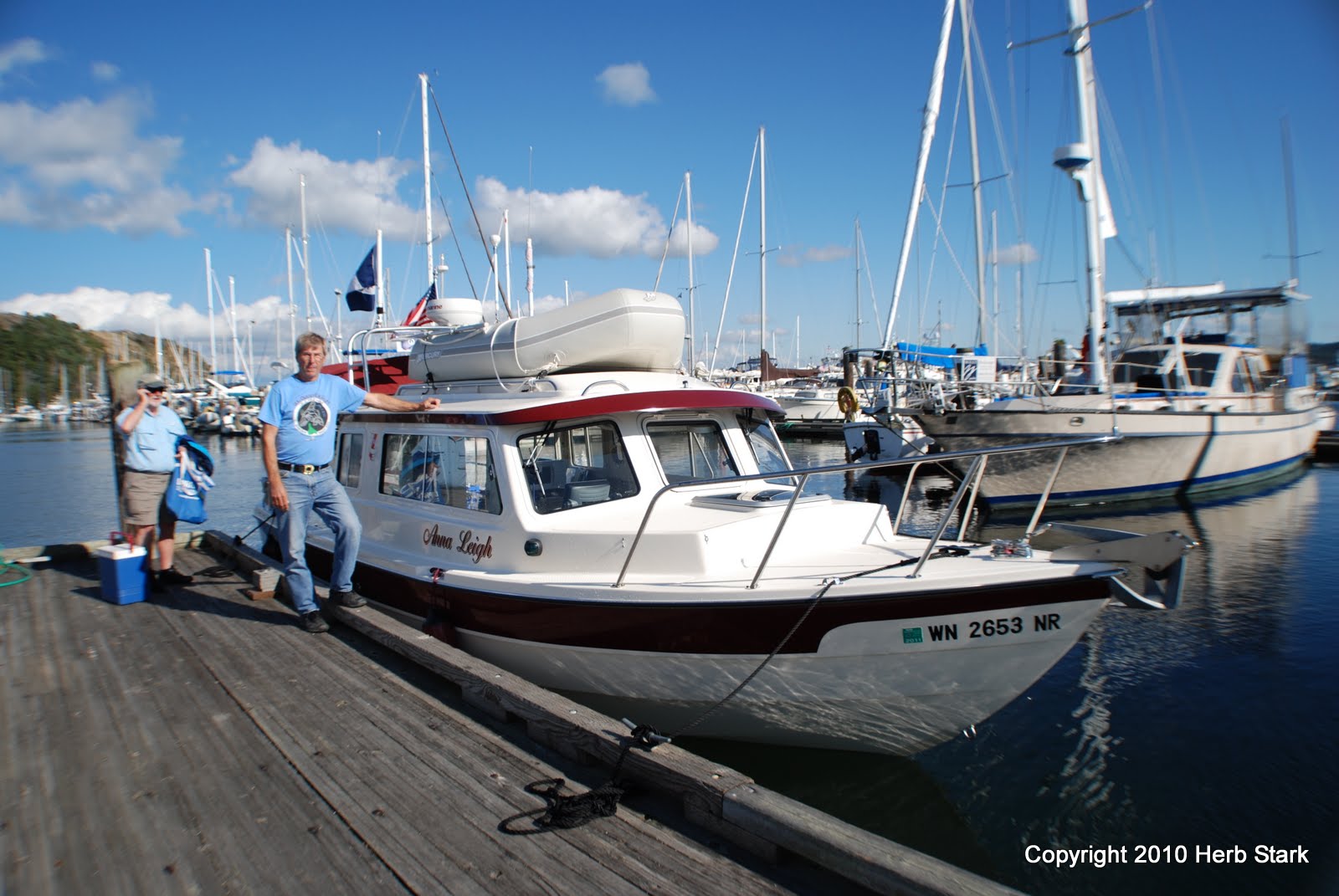 Willie and I just finished a great dinner of Dungeness Crab. Yesterday David of Anna Leigh picked us up at Cap Sante and gave us a grand tour of the San Juans. We put a couple of pots down on the East side of Guemes and went as far as Jones Island where he showed us his grandchildren's favorite mooring. On the way back we checked the pots and divided up the spoils. We both had enough for dinner for our families. We cooked them according to David's instructions and they were fantastic. Willie and I were fighting over the last leg.